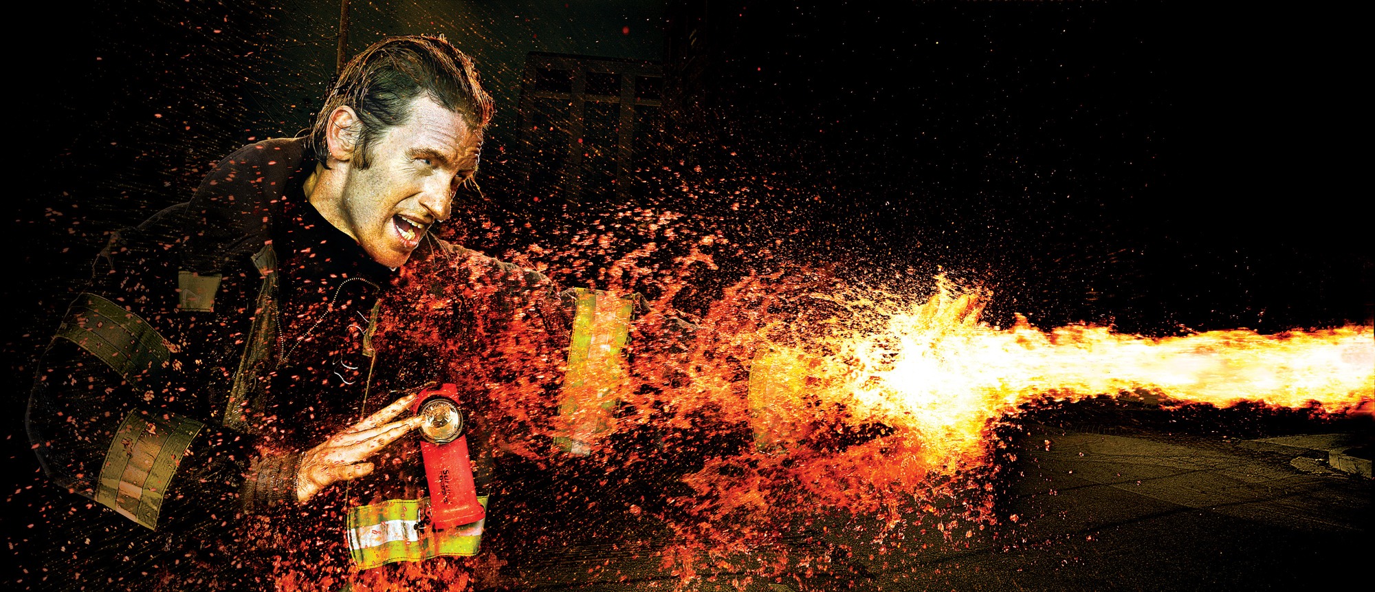 The following two images, presented in before/after context, were used in press kits for Rescue Me.